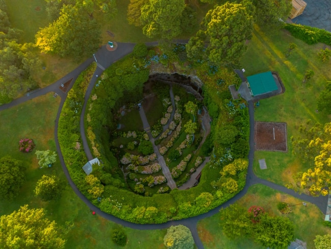How deep is Umpherston Sinkhole? How did the Umpherston Sinkhole form? Story behind Mount ... Umpherston Sinkhole, also known as the Sunken Garden, is what you'd get if Rio Tinto downed tools and Costa Georgiadis moved in. The limestone crater – 20m deep and 50m across – is a green thumb's utopia in the heart of Mount Gambier.