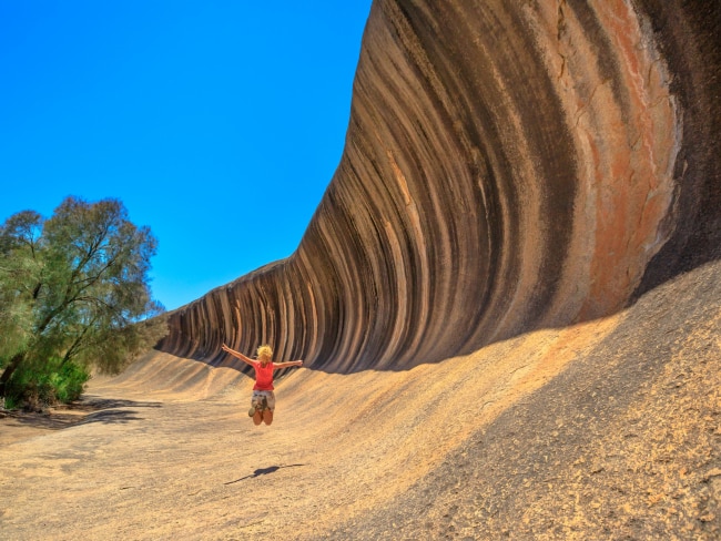 Wave Rock (Nyungar: Katter Kich) is a natural rock formation that is shaped like a tall breaking ocean wave.