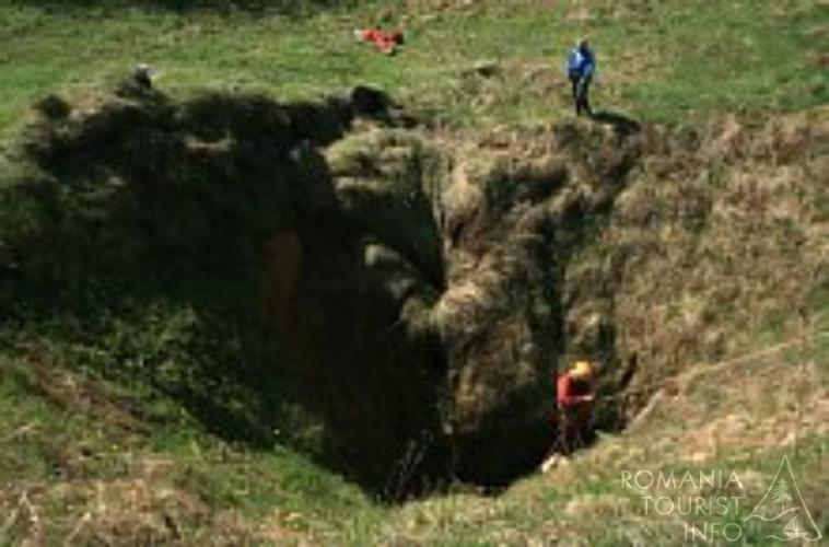 It is a deep well of variable depths. It can appear at the intersection points of the diaclazes or through the collapse of the ceiling of some underground grottos created in this way the connection with the outside. Avenul Sesuri in the Bihor mountains with its 180 m depth is the deepest in Romania.